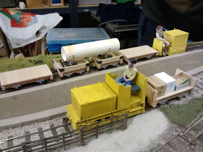 | The fiddleyard now provides a nice work area at stool height, for which the knees are very grateful. |